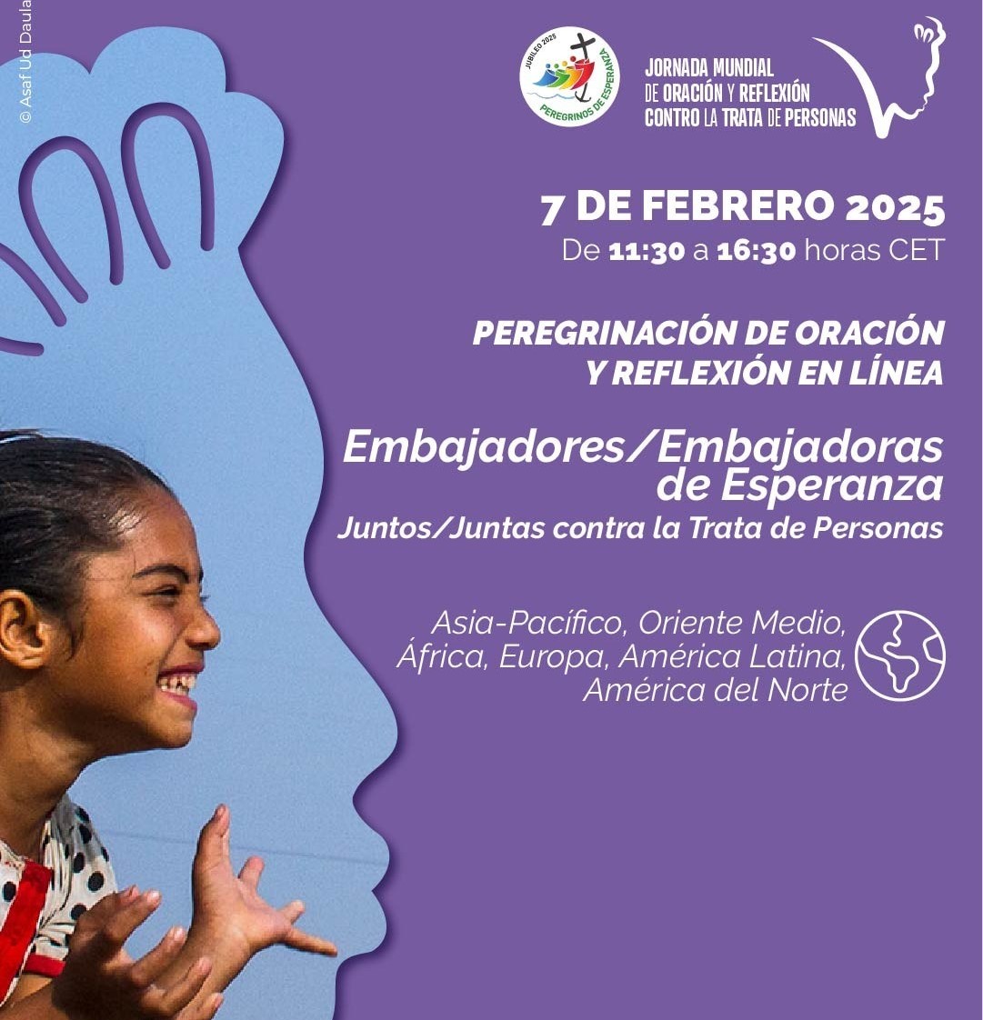 «Embajadores de la esperanza, juntos y juntas contra la trata de personas» lema elegido, para esta Jornada Mundial en consonancia con el jubileo y fiesta de Santa Josefina Bakhita, símbolo universal del compromiso de la Iglesia contra este fenómeno de  la Trata de Personas y la Migración forzada.