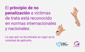 El principio de no penalización protege a las víctimas de trata para que no sean castigadas por delitos que cometieron como consecuencia directa de haber sido tratadas.