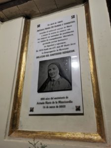 El padre Dionisio de Felipe, en su libro La Venerable Madre Antonia, narra el momento en el que Antonia acudió a rezar a dicha capilla, donde se colocó una placa conmemorativa de Antonia María de Oviedo y Schönthal el pasado 14 de marzo de 2023, en el contexto del Encuentro Internacional de Clausura del Bicentenario de Nacimiento de Antonia María, en recuerdo de este acontecimiento.